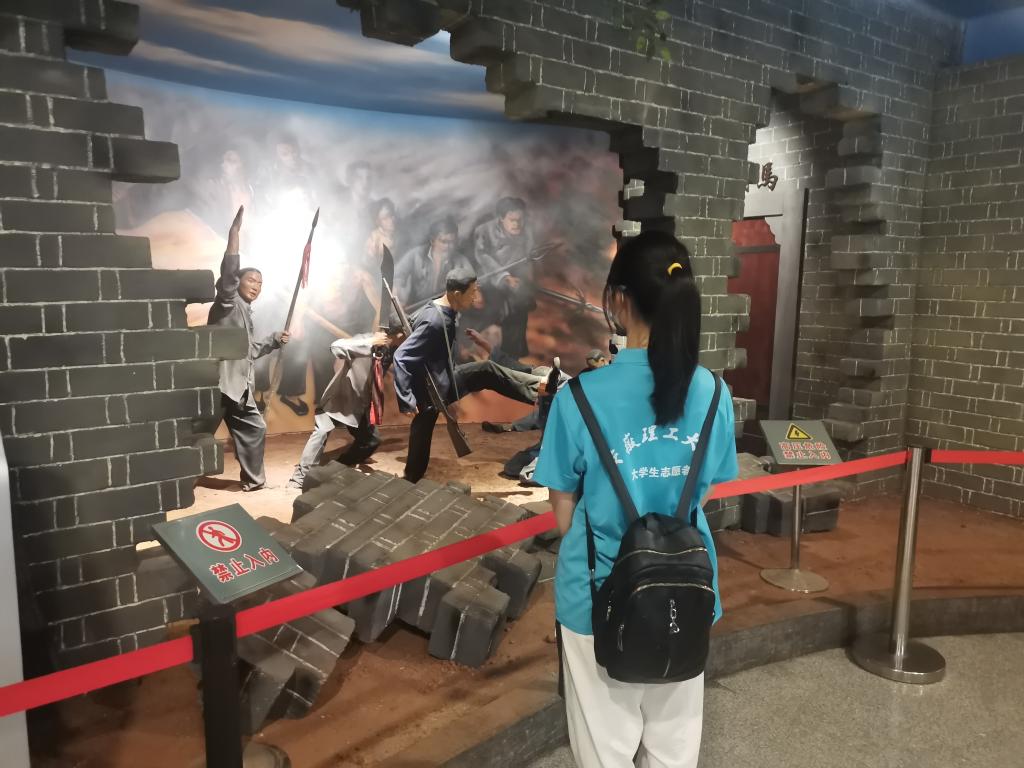 志愿者驻足观看六霍起义模拟场景