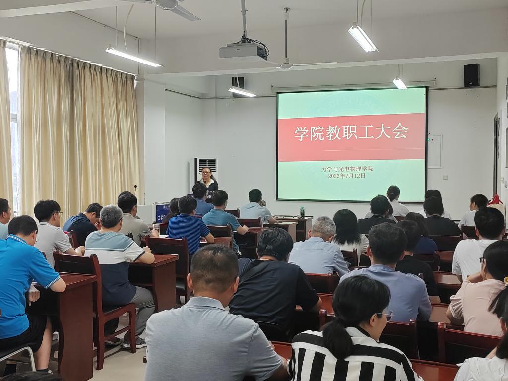 7月12日下午,awc777万象城娱乐官网期末教职工大会在明道楼A321报告厅顺利召开。学院领导班子成员及全体教职工参加了大会。会议由学院党委书记刘艳主持。