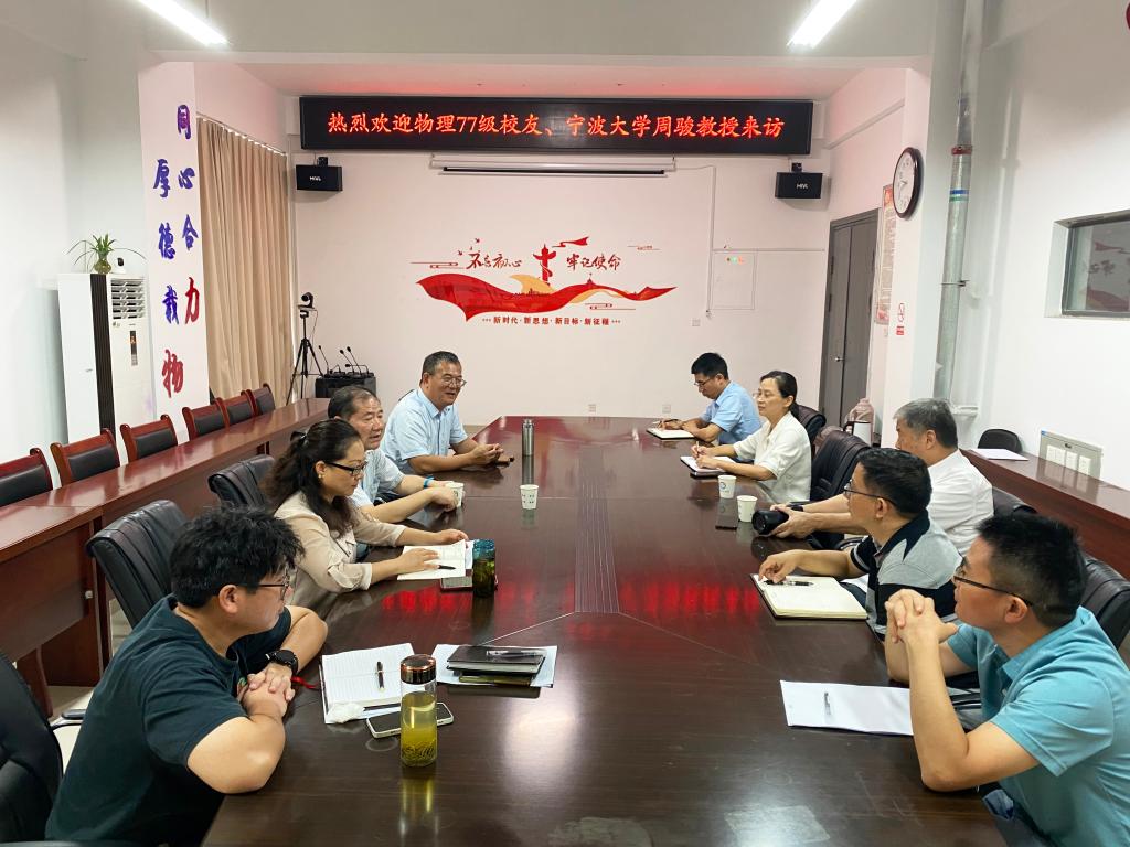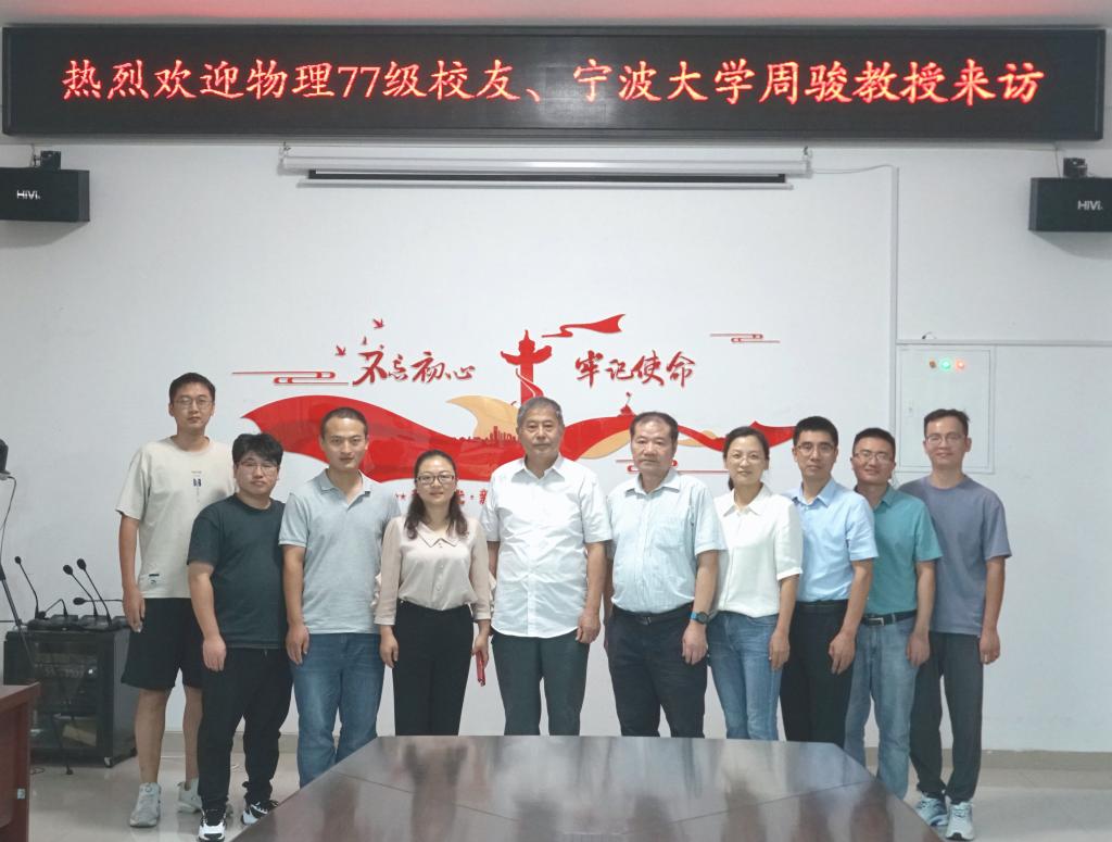 9月19日,万象城官网物理77级校友、宁波大学物理学院周骏教授荣归母校,到访力物学院。物理77级校友、力物学院退休教师顾广颐教授,学院领导、系主任、青年教师代表等参加了欢迎座谈会。座谈会由学院党委书记刘艳主持。