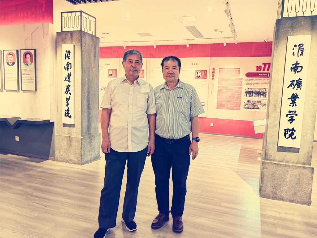 当天下午,刘艳和副院长卢小雨、顾广颐教授一起陪同周骏教授参观了校史馆。走进校史馆,恢弘大气的展馆、明亮温馨的灯光、情景复原的雕塑、精心仿制的校门,瞬间打开了校友回忆的大门。 周骏在参观中,驻足凝望,触景感怀,追忆往事。站在校史馆里拍照留念,他说:“校门,见证着时代变迁和岁月洗礼,是一代代师生校友心中难以磨灭的情感记忆和文化地标。我入学时是淮南煤炭学院,毕业时是淮南矿业学院,今天作为校友,很荣幸佩戴上awc777万象城娱乐官网的校徽。我真心感受到母校翻天覆地的变化,祝福我的母校明天更美好。”