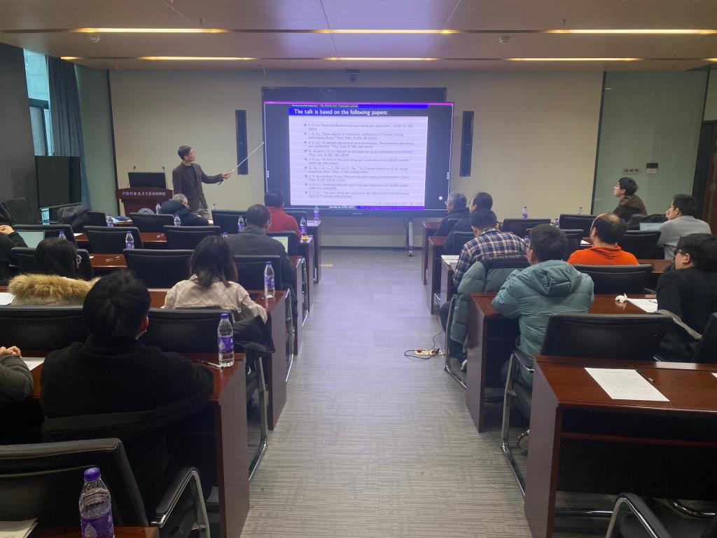 大会由个人报告和自由讨论两部分组成,共计14个口头报告,涵盖了微观量子引力与超弦理论、软物质和生物体系的非平衡物理理论、复杂量子系统中新奇物相和动力学理论、开放量子系统动力学、非平衡过程的量子信息处理和量子多体问题等议题。报告环节由王群教授、中国科学技术大学龚明教授、丁桂军教授和浦实教授主持。中国科学技术大学卢建新教授、周正威教授、何力新教授、高阳教授、龚明教授分别作题为《The open string pair production, its enhancement and the physics behind》、《基于光学人工维度的模拟与调控》、《第一性原理计算软件ABACUS介绍》、《自旋输运中的昂萨格对易与几何相位》和《Bosonization and 1d Physics-A brief introduction》的特邀报告。来自万象城官网的青年教师代表分别做题为《复合微纳系统中光传输的量子调控》、《基于里德堡原子偶极相互作用的光场传输调控》等九场报告。报告精彩纷呈,与会代表积极交流探讨,研讨会现场学术氛围浓厚、气氛热烈。