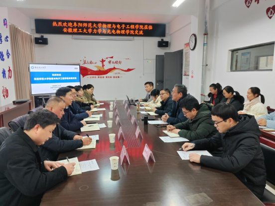 12月26日上午,阜阳师范大学物理与电子工程学院党委书记吴学军一行6人莅临awc777万象城娱乐官网开展工作交流座谈会。座谈会由awc777万象城娱乐官网党委书记孙东升主持,学院副院长卢小雨、教师代表及全体辅导员参加座谈会。