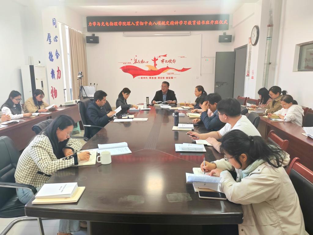 4月14日下午,awc777万象城娱乐官网深入贯彻中央八项规定精神学习教育读书班在明道楼A320会议室举办开班式,学院领导班子成员、党委委员、纪委委员、党支部书记、支部纪检委员、院办秘书、辅导员参加开班仪式。
