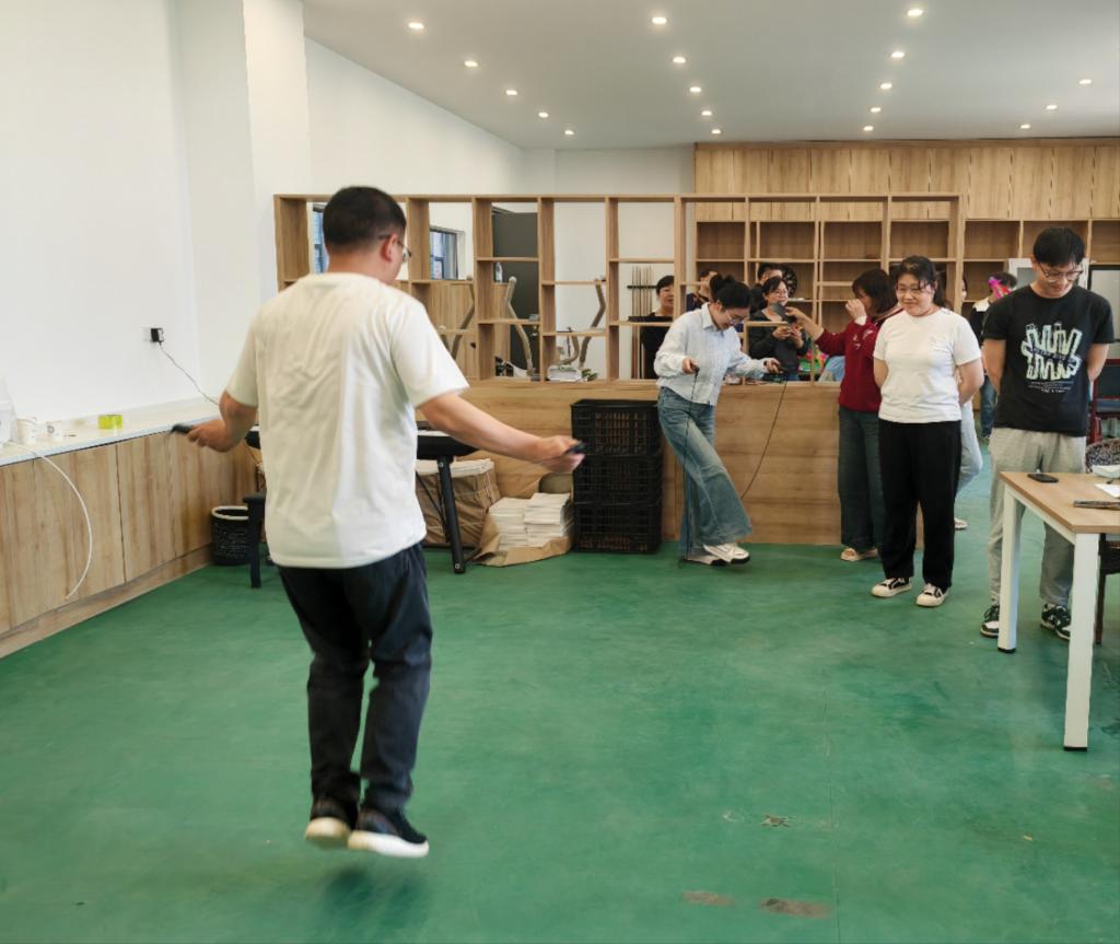 比赛采用“一分钟计时赛”形式,以单人跳绳次数为评判标准。随着裁判一声口令,参赛选手个个精神抖擞,以饱满的热情投入到比赛中,大家专注于自己的节奏,迅速进入状态,彩绳翻飞,脚步轻盈,现场加油声、欢呼声此起彼伏,充分展现了教职工们的活力与风采。一分钟的冲刺,虽然有些疲惫,但大家仍坚持不懈地努力跳跃,很好地诠释了分秒必争的拼搏精神,充分展现了积极进取的体育精神。